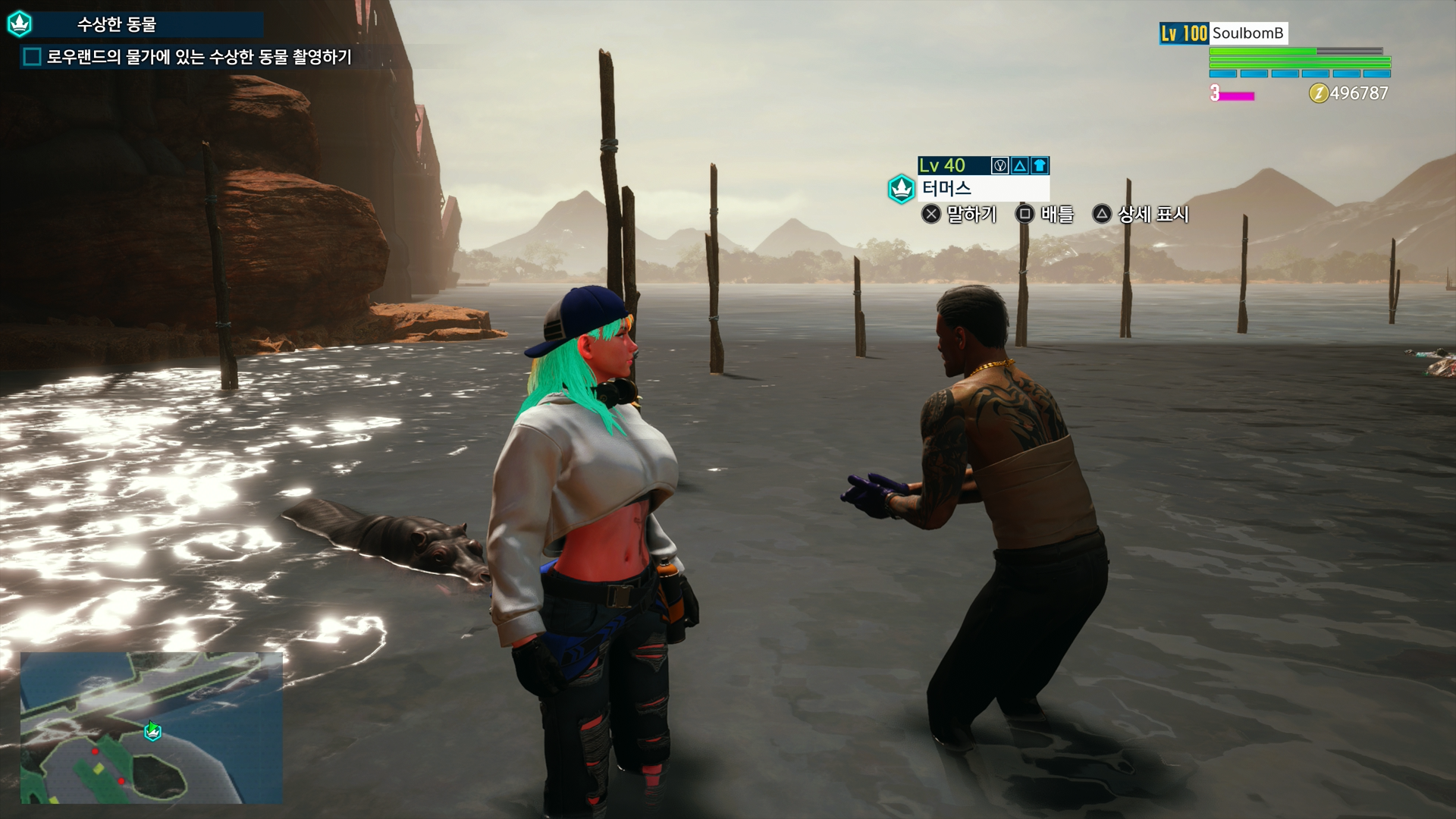 이번엔 하마 찰칵불만이면 니가 와서 찾아보라고다시 처음 아저씨한테 말을 걸면 이제 제대로 찾은 것 같습니다