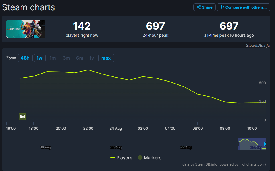 PlayStation’s Concord, a game reportedly in the works for eight years trying to break into the hero shooter market, has launched with sub-700 concurrent players on Steam